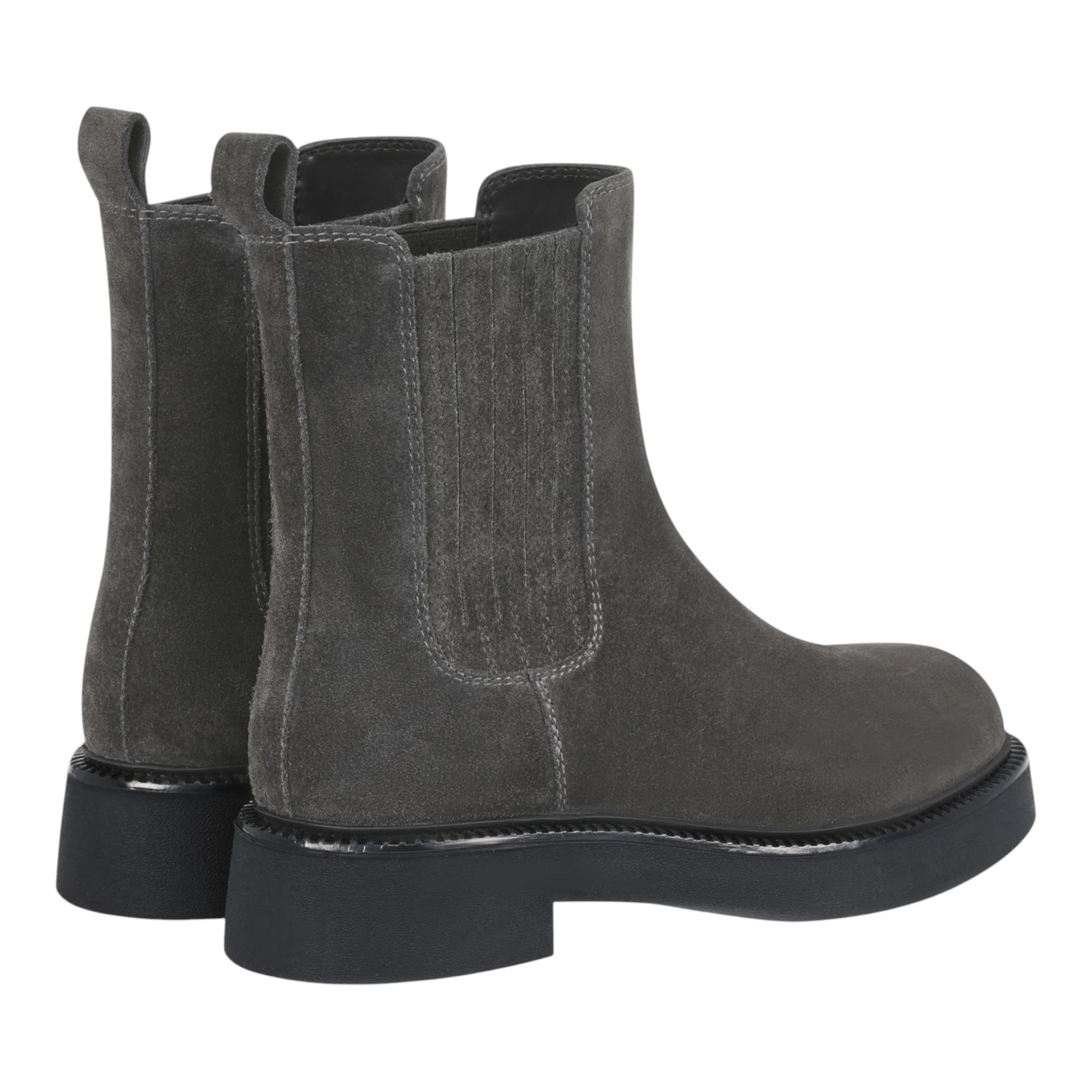 Натуральная кожа спилок в сочетании с текстильными стрейч-вставками обеспечивает гибкость при ходьбе и легкость надевания благодаря эластичным резинкам по бокам. Серый цвет универсален для создания базовых образов. Натуральный мех в подкладке и на стельке сохраняет тепло даже в морозную погоду, а резиновая подошва гарантирует надежное сцепление с зимними поверхностями.