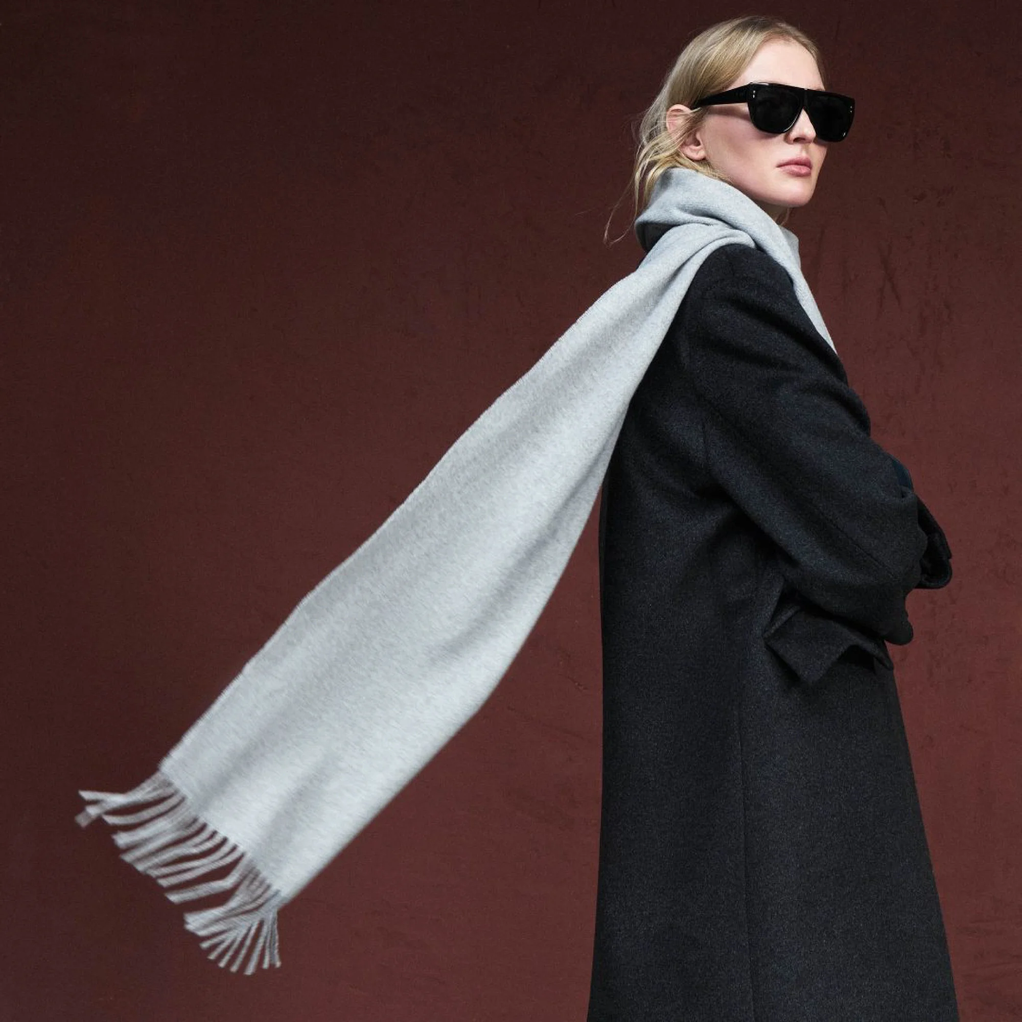 Смешанный состав позволяет стирать изделие в деликатном режиме, что существенно упрощает повседневный уход. При правильном обращении палантин сохранит форму и насыщенность цвета на долгое время.