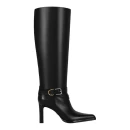 Высота голенища 415 мм обеспечивает элегантную посадку по ноге, обхват 306 мм подходит для стандартной полноты икры. Черный цвет делает сапоги универсальными для офисных и вечерних образов. Полнота F соответствует европейскому размеру 6, что подходит для стопы средней ширины.