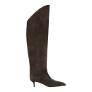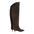 Натуральная велюровая кожа обеспечивает мягкость и благородную текстуру, которая гармонично сочетается с различными образами. Женская модель на низкой шпильке высотой 4 см добавляет изящества силуэту, не создавая дискомфорта при длительной носке. Высота голенища 45 см визуально удлиняет ноги, а обхват 33 см подходит для большинства типов фигур.