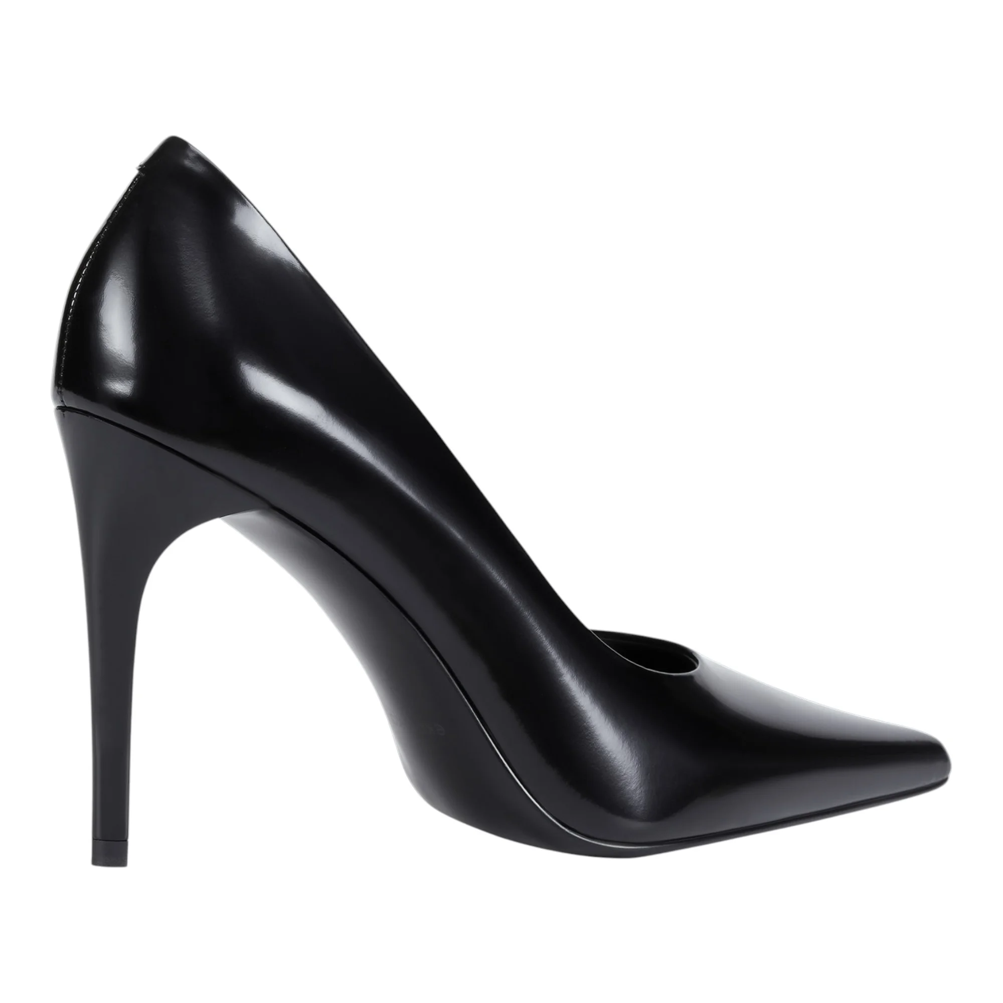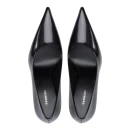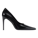 Натуральная полированная кожа верха обеспечивает благородный внешний вид и долговечность, а кожаная подкладка создает комфортный микроклимат для стопы. Удлиненный закрытый мысок визуально вытягивает силуэт ноги, а стандартный высокий каблук-шпилька выше 9 см добавляет роста и подчеркивает женственность походки. Отсутствие застежки упрощает процесс надевания и создает лаконичные линии.
