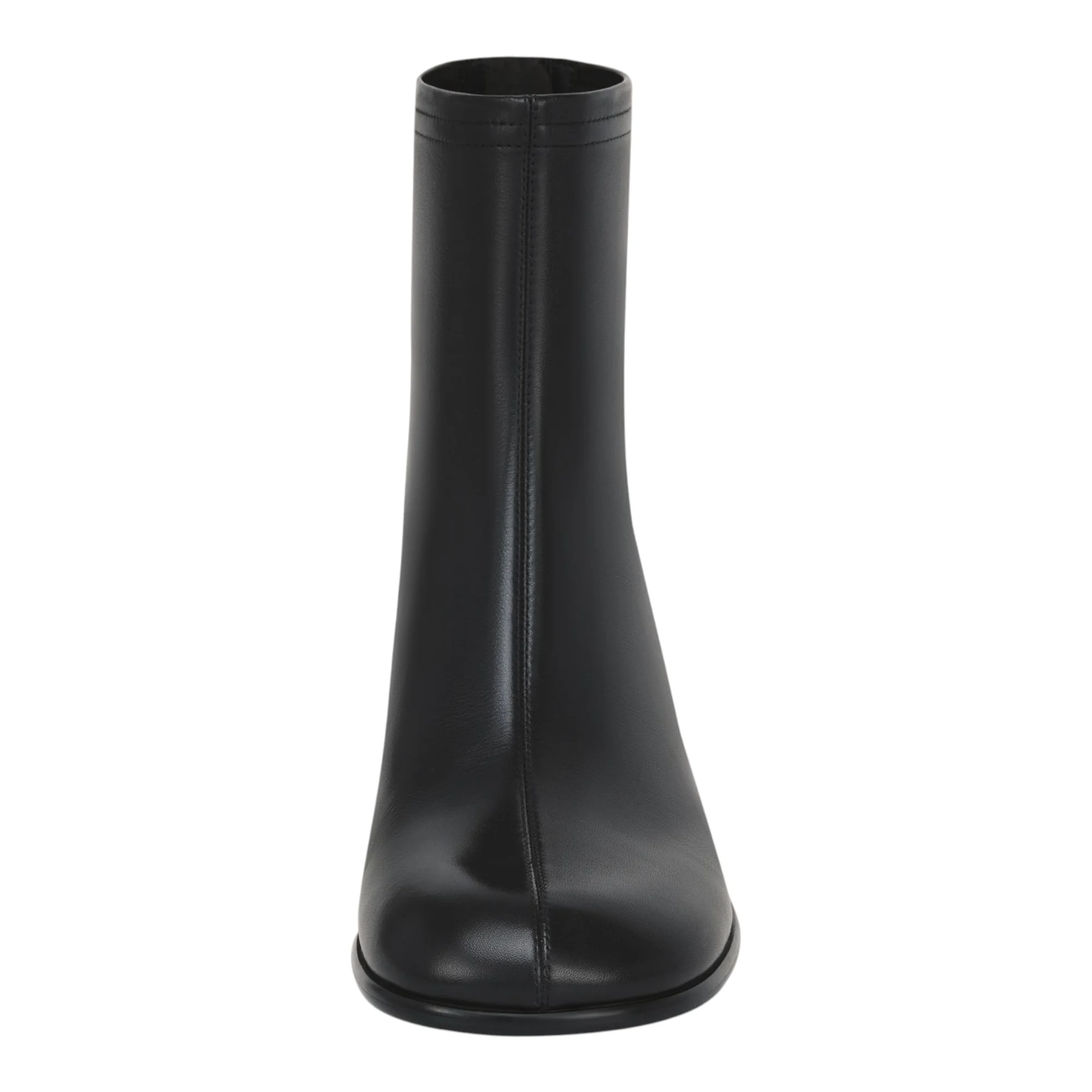 Каблук-столбик средней высоты до 9 см придает силуэту изящество, сохраняя устойчивость при ходьбе. Высота голенища 146 мм визуально удлиняет ногу, а обхват 243 мм подходит для большинства типов голени. Круглый закрытый мысок универсален для различных стилей одежды. Черный цвет легко сочетается с гардеробом любой цветовой гаммы.