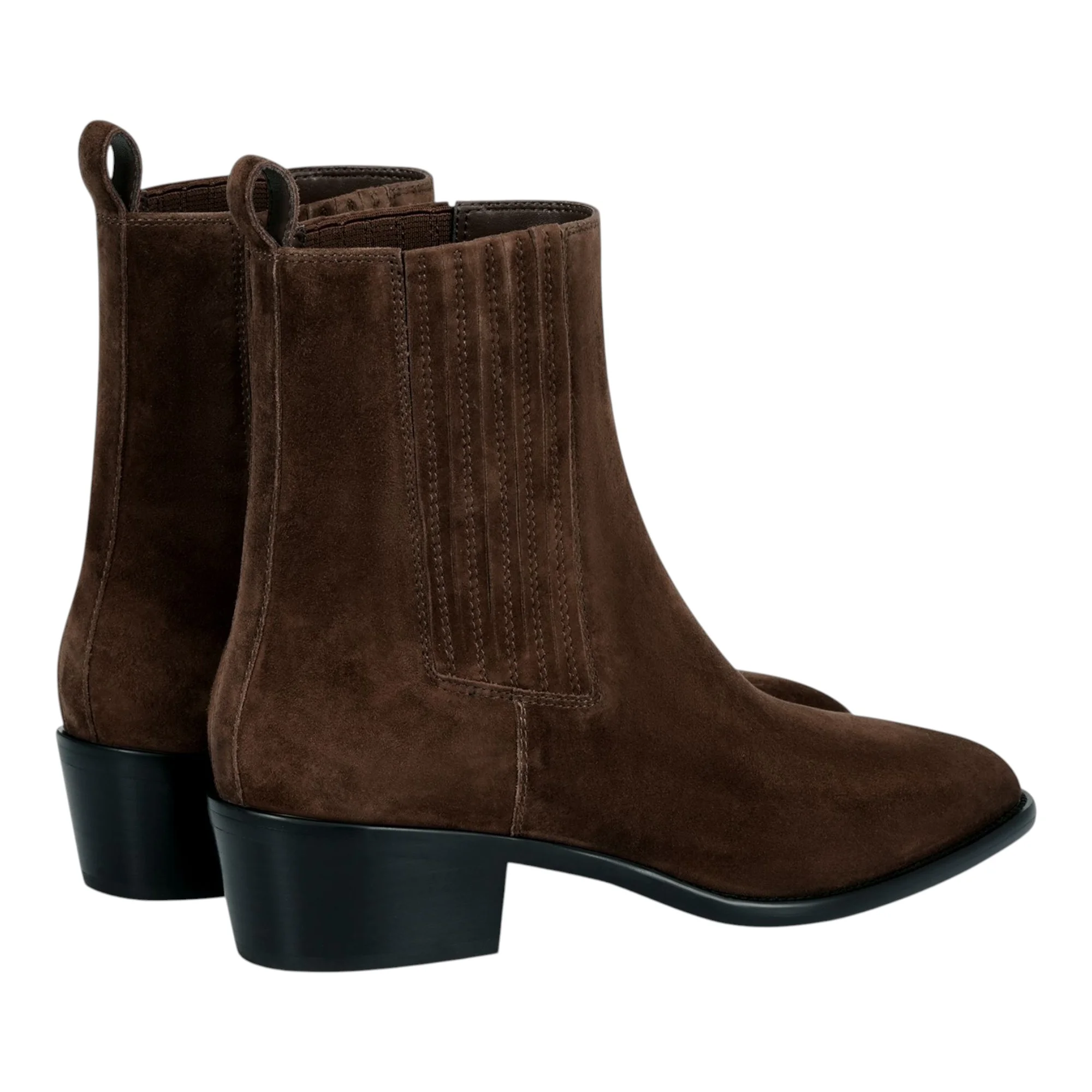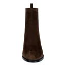 Коричневый оттенок универсально сочетается с базовым гардеробом, а комбинация натурального велюра и эластичного текстиля обеспечивает идеальную посадку по ноге. Резинка в качестве застежки позволяет легко надевать и снимать обувь, экономя время в повседневной спешке. Высота голенища 146 мм создает элегантный силуэт, визуально удлиняя ногу.