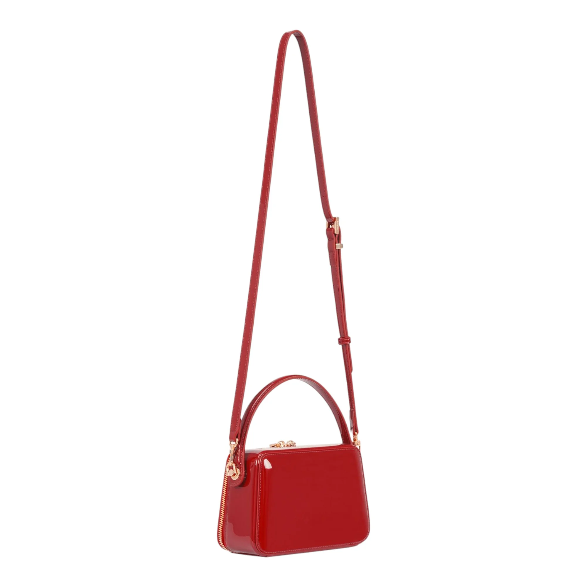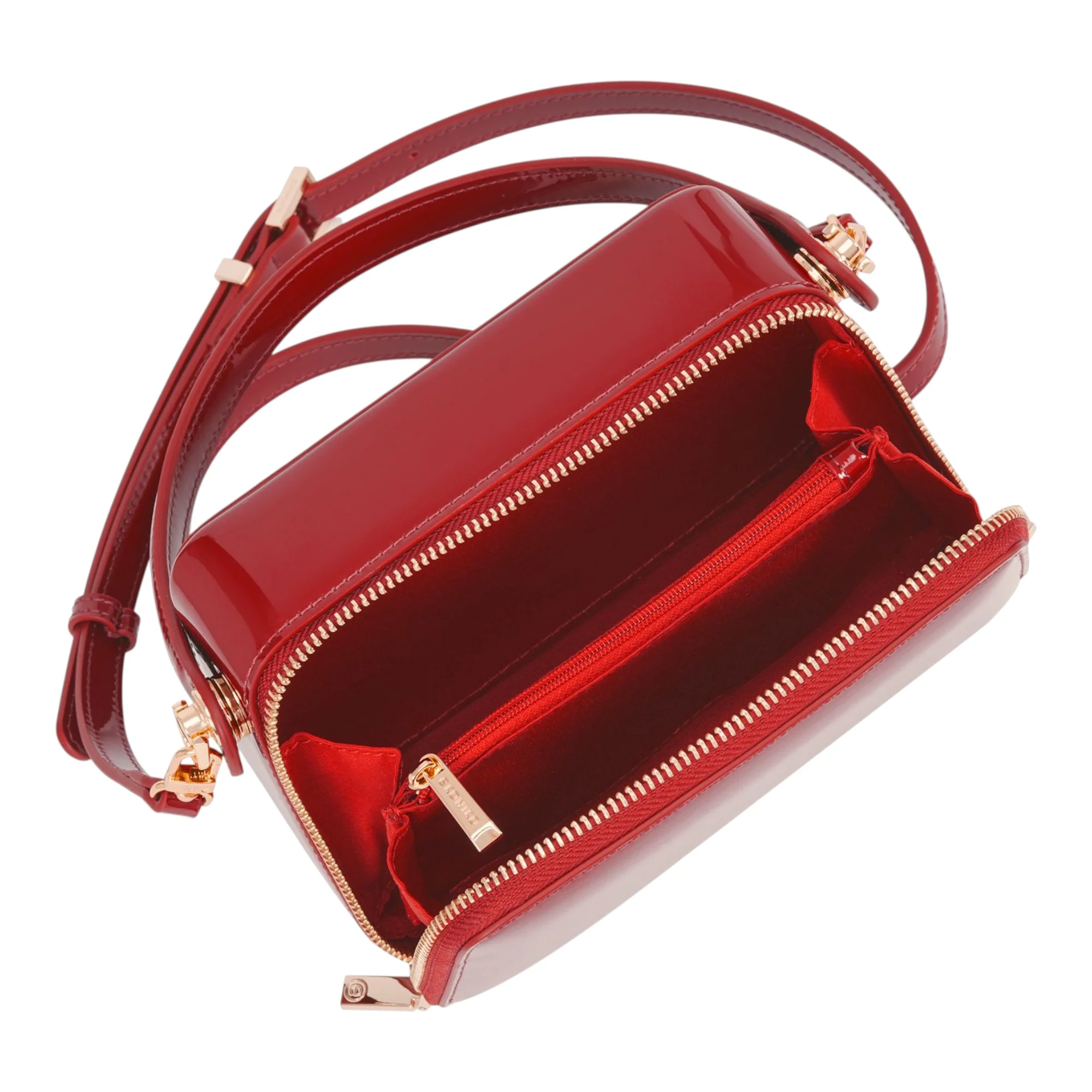 Лакированная поверхность создает элегантный глянцевый эффект, который сохраняет презентабельный вид даже при активном использовании. Молния обеспечивает быстрый доступ к содержимому и надежно защищает личные вещи от выпадения. Полиэстеровая подкладка устойчива к истиранию и легко очищается от загрязнений, что особенно важно для маленького размера сумки, где каждый предмет находится в тесном контакте.