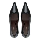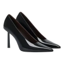 Натуральная лакированная кожа верха обеспечивает благородный блеск и долговечность, а удлиненный закрытый мысок визуально вытягивает силуэт стопы. Высота каблука свыше 9 см добавляет роста и подчеркивает женственность походки, при этом подошва толщиной 3,5 см создает дополнительную амортизацию. Комбинированная подошва из туннита и резины гарантирует надежное сцепление с поверхностью.