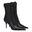 Высокий каблук-шпилька выше 9 см визуально удлиняет силуэт и придает уверенности в деловых встречах и вечерних выходах. Удлиненный закрытый мысок создает изящную линию стопы, а высота голенища 190 мм обеспечивает элегантное обрамление щиколотки. Боковая молния позволяет легко надевать и снимать обувь, экономя время в динамичном ритме дня.