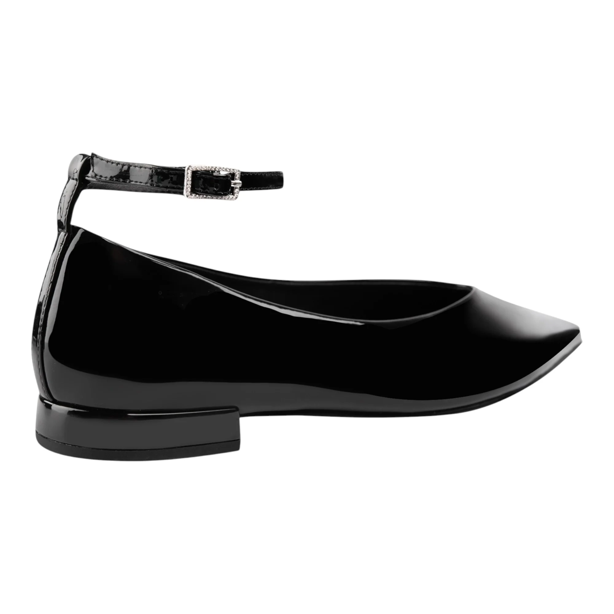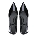 Натуральная лакированная кожа верха придает обуви изысканный блеск и легко очищается от загрязнений. Удлиненный закрытый мысок визуально вытягивает стопу, создавая женственный силуэт. Пряжка обеспечивает надежную фиксацию и позволяет регулировать посадку по подъему стопы.
