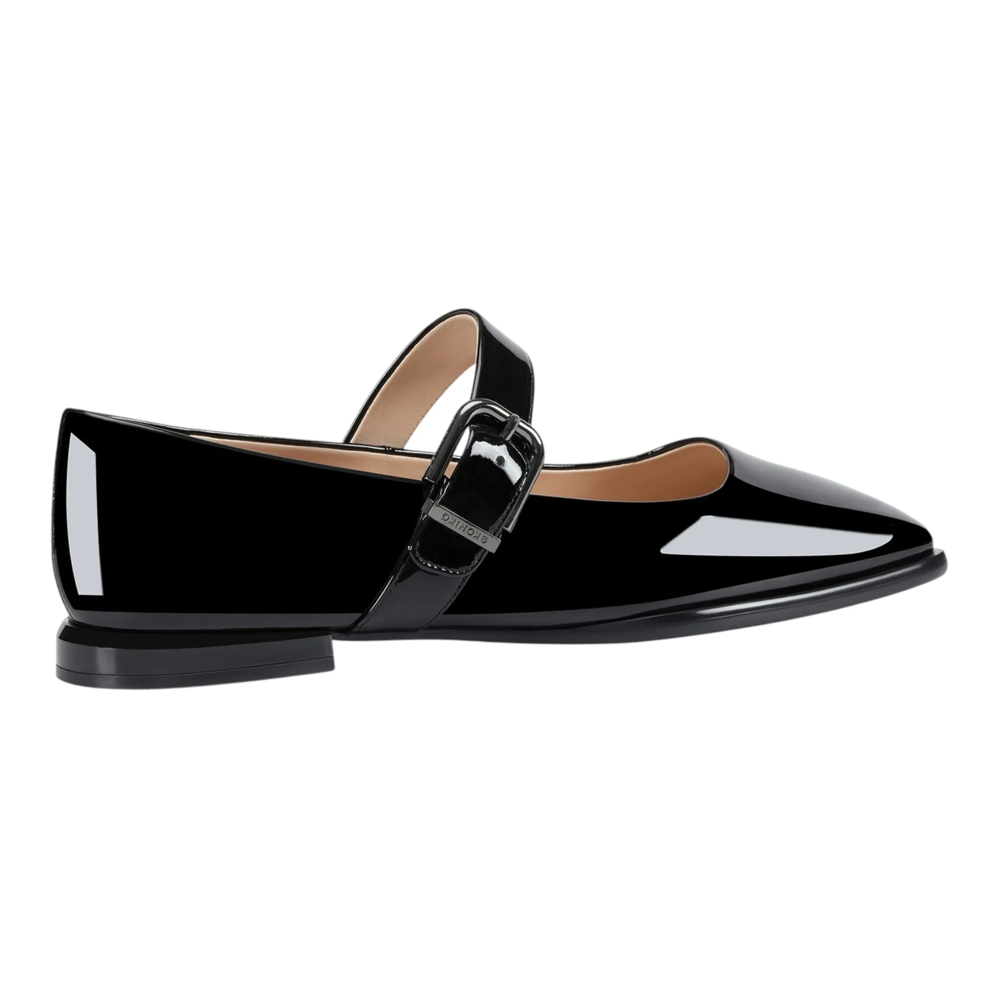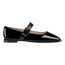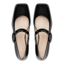Натуральная лакированная кожа верха придает образу элегантность и легко сочетается с любым гардеробом. Закрытый квадратный мысок визуально удлиняет стопу, а отсутствие каблука обеспечивает устойчивость при длительной ходьбе. Пряжка добавляет практичности и позволяет регулировать посадку по подъему.