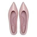 Натуральная лакированная кожа верха придает обуви элегантный блеск и легко очищается от пыли, что особенно актуально в летний сезон. Розовый цвет добавляет женственности образу и хорошо сочетается с базовым гардеробом. Удлиненный закрытый мысок визуально вытягивает стопу и защищает пальцы от внешних воздействий.