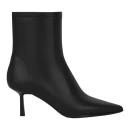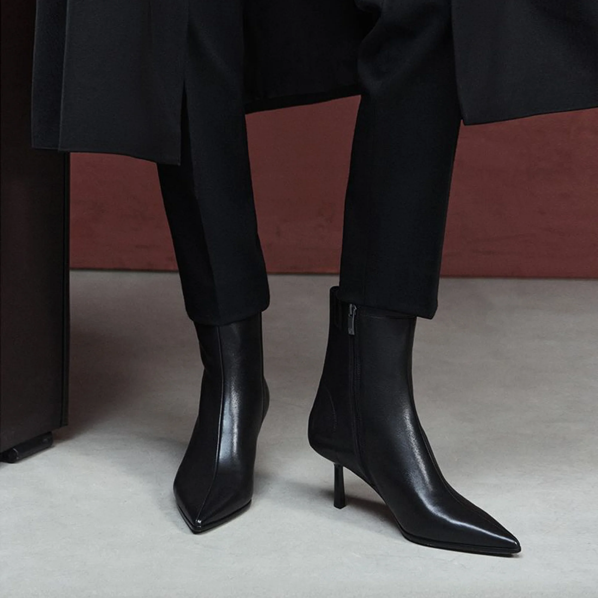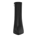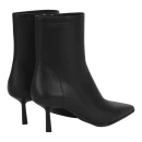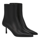 Натуральная кожа верха обеспечивает долговечность и презентабельный внешний вид, а текстильная подкладка создает комфортный микроклимат для стопы. Черный цвет делает ботильоны универсальными для сочетания с различными образами. Удлиненный закрытый мысок визуально вытягивает силуэт ноги, а высота голенища 173 мм обеспечивает надежную фиксацию щиколотки.